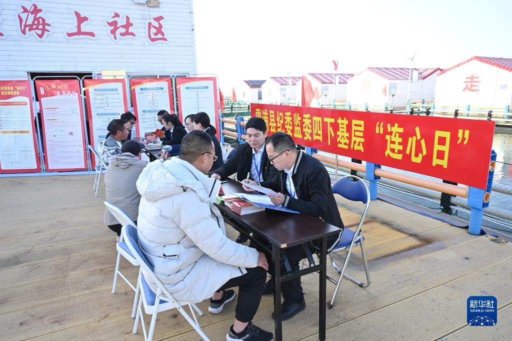 2023年11月18日,宁德市霞浦县纪委监委工作人员在溪南镇七星海上社区接访。新华社记者 姜克红 摄