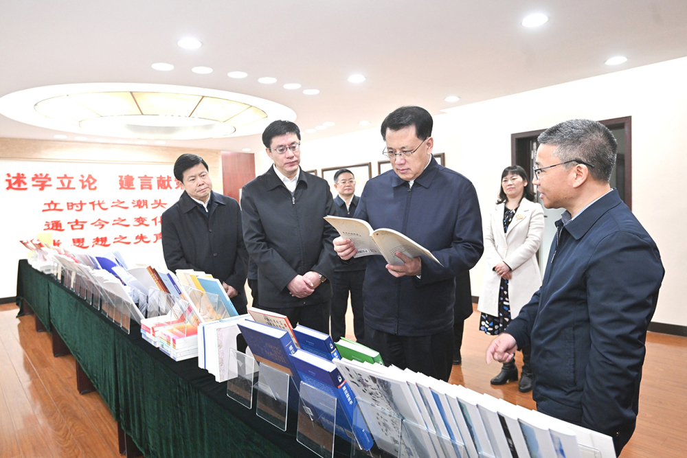 ▲12月29日上午,在重庆社会科学院,市委书记袁家军翻阅院办刊物,了解最新研究成果。记者 苏思 摄/视觉重庆