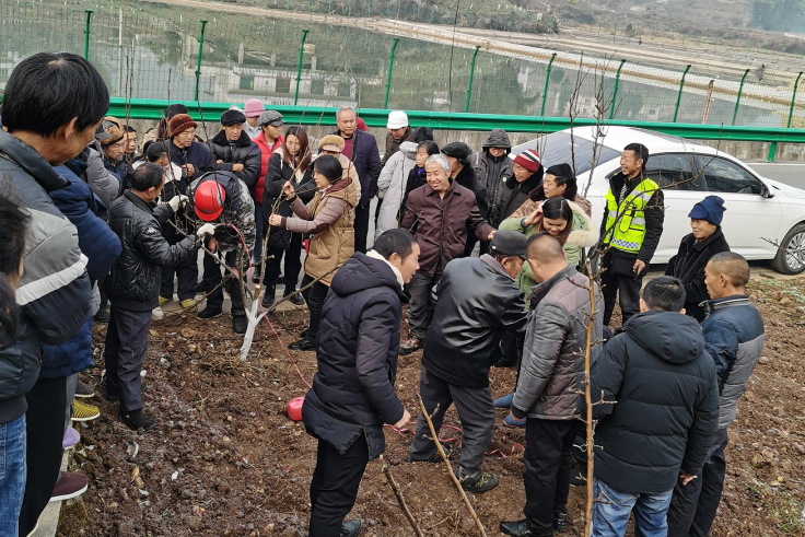 “从12月起,青脆李就已经进入休眠期了,冬季气温低,害虫进入休眠越冬,病害的孢子和病原菌也随修剪下来的病叶和病枝残留下来,此时应将枯枝、落叶和杂草等收积清理干净,进行沤肥或深埋..……”中梁乡星溪村的脆李种植基地里,乡党委组织的农村实用人才一边讲授当前时节青脆李管护要点,一边现场演示如何科学修剪、树干涂白等工作,吸引了不少青脆李种植户前来观看。