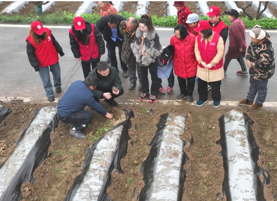 “前几天气温回升,马铃薯苗子大部分都出苗了。但这两天受霜冻天气的影响,不宜破膜,若破膜后,马铃薯苗子易冻伤,影响后期产量。需气温回升后再进行破膜……”近日,受高空槽和冷空气共同影响,巫溪县高海拔地区迎来了降温降雪天气,对部分农作物生长造成一定影响,尖山镇党委政府迅速组织16名农技服务队志愿者下沉田间地头,现场讲解马铃薯防冻知识,指导帮助农户开展好防冻减灾工作。