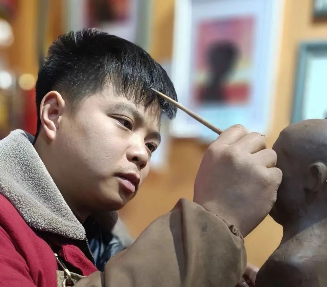 大二上学期的一天,一个朋友邀请徐位领去看泥塑。作为土木工程专业学子,徐位领有时也玩泥巴,但这与泥塑不同。看到工作台上惟妙惟肖的泥塑作品,徐位领来了兴致,拿起泥巴随兴捏了起来。泥巴与肌肤的亲密接触,让他有种说不出的奇妙感觉。更重要的是,开团毫无生机的泥巴,沾上人的温热与灵动,便有了生命的质感。