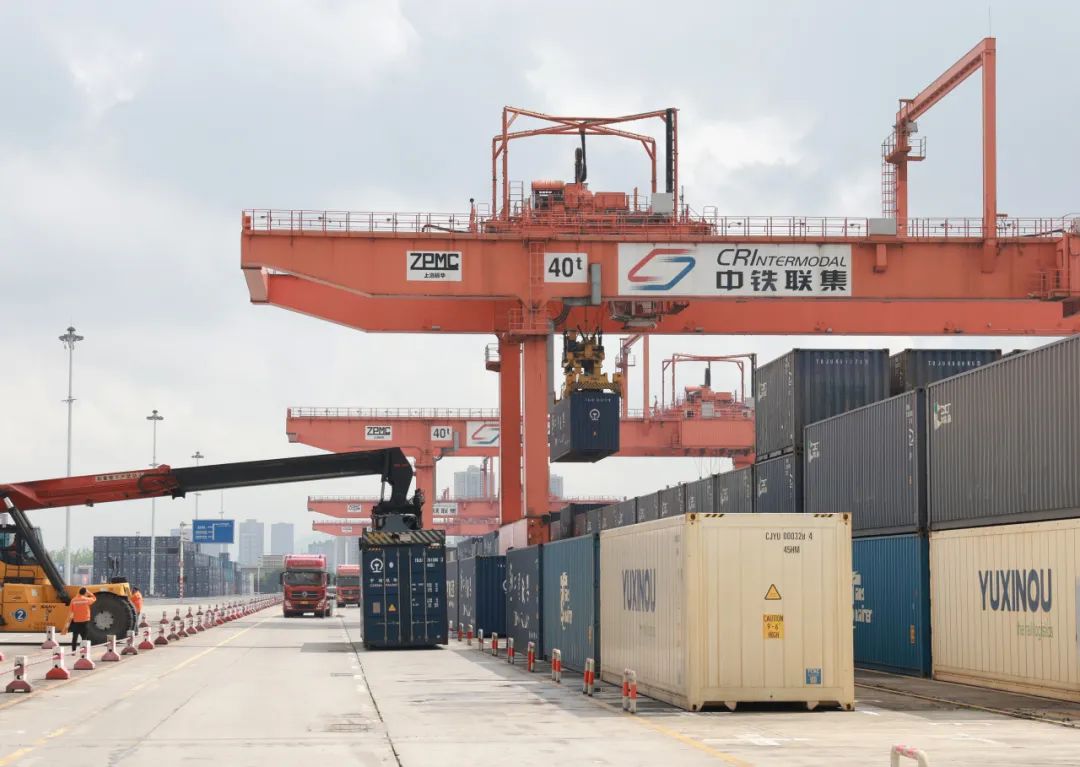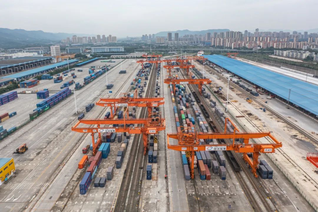以团结村中心站为主要到发点,中欧班列(成渝)已稳定运行线路超50条,辐射近40个国家和地区的110个城市;截至今年3月底,西部陆海新通道通达全球121个国家和地区的503个港口。