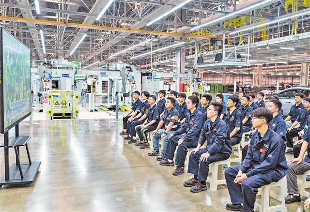 长安汽车数智工厂第一时间组织产线工人收看学习总书记重要讲话精神。与此同时,工厂生产线关键流程仍然正常运转,显示出高度的自动化能力。长安汽车数智工厂协同保障中心经理、党支部书记周丹表示,总书记强调要因地制宜发展新质生产力,探索发展现代制造业和战略性新兴产业,布局建设未来产业,形成地区发展新动能。工厂正通过自动化、智能化建设,推动新质生产力加快发展。长安汽车将全面优化产品供给结构,实现品牌提升新跃迁;强化科技创新,推动关键核心技术不断突破,实现技术引领新跃迁;构建产业生态,构建新质生产力,强化中央企业对地区赋能,实现发展共赢新跃迁。