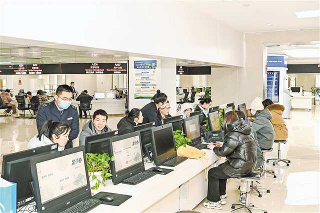 ▲1月25日,两江新区政务大厅,工作人员在协助办事群众用“渝快办”办理业务。(资料图片)
