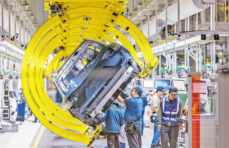 以智能网联和新能源为主攻方向,共建高水平汽车产业研发生产制造基地,是成渝地区双城经济圈推动产业协同的重要抓手之一。作为全国重要的汽车生产基地,近年来重庆以建设世界级智能网联新能源汽车产业集群为目标,加快推动汽车产业向新能源、智能化、高端化跃升。图为2024年4月25日,在重庆市两江新区的赛力斯汽车超级工厂,工作人员在总装车间生产线上作业。 新华社记者 黄伟/摄
