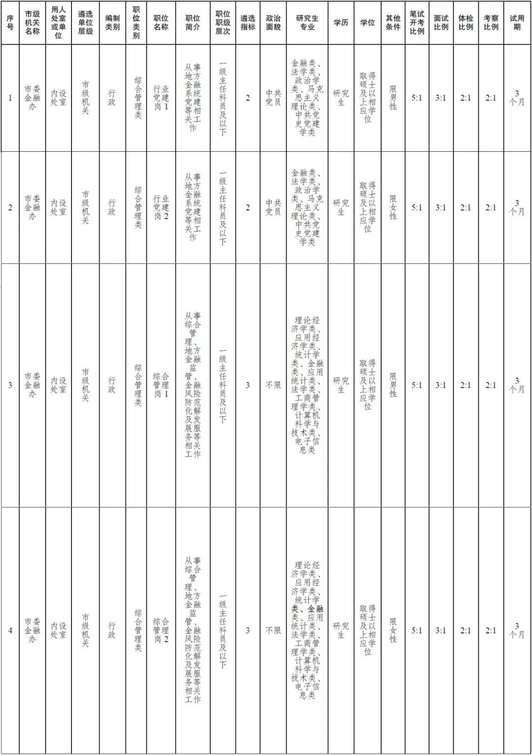 1.中共重庆市委金融委员会办公室2024年度公开遴选公务员职位表