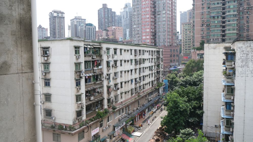 这是城市更新前的重庆市九龙坡区谢家湾街道民主村社区一角(资料照片)。2021年九龙坡区启动民主村片区城市更新,对其进行“留、改、拆、增” 微改造、巧利用,既保留历史印记,又完善居住功能,并规划建设功能服务区、市井烟火区等区域。2023年4月,民主村更新项目完成,社区环境焕然一新。