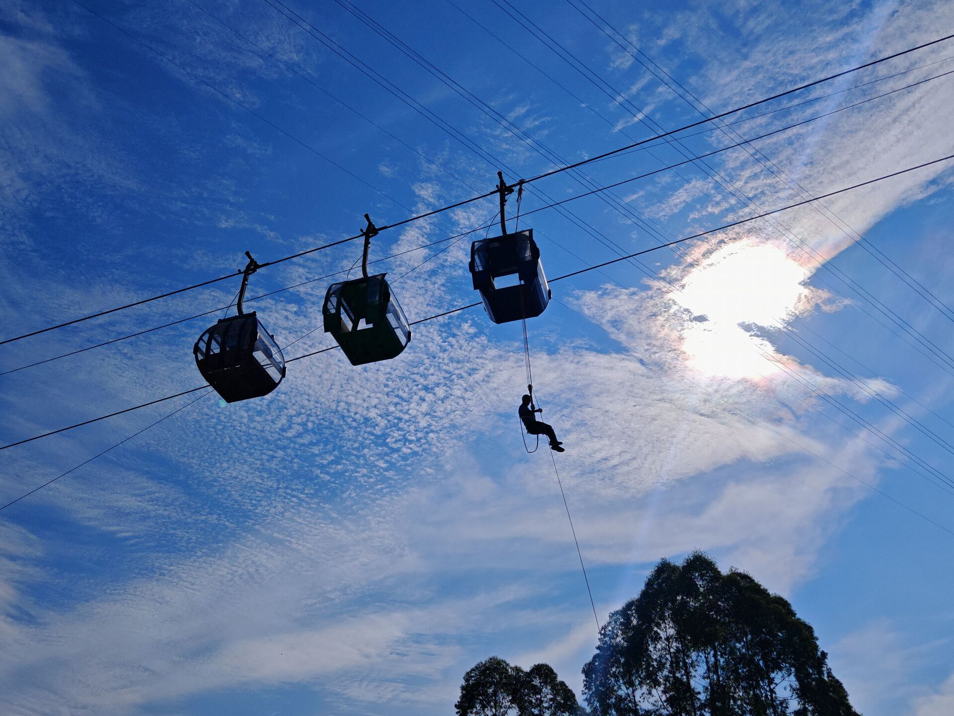 值班站长立即向景区安全中心报告所发生情况后,应急救援指挥小组迅速启动应急预案,对滞留在线路上的乘客实施人工垂直紧急救援。应急救援小组第一时间赶赴游客被困现场,通过密切配合,一边广播员通过现场广播对游客情绪进行安抚,一边救援小组通过救援设备爬上7-8号支架,运用T型救护工具到达“被困游客”的吊厢,再通过缓降器和地面救援人员的配合,经过各小组20多分钟紧密协作后,最终将游客安全救助到地面,整个救援过程十分顺利。