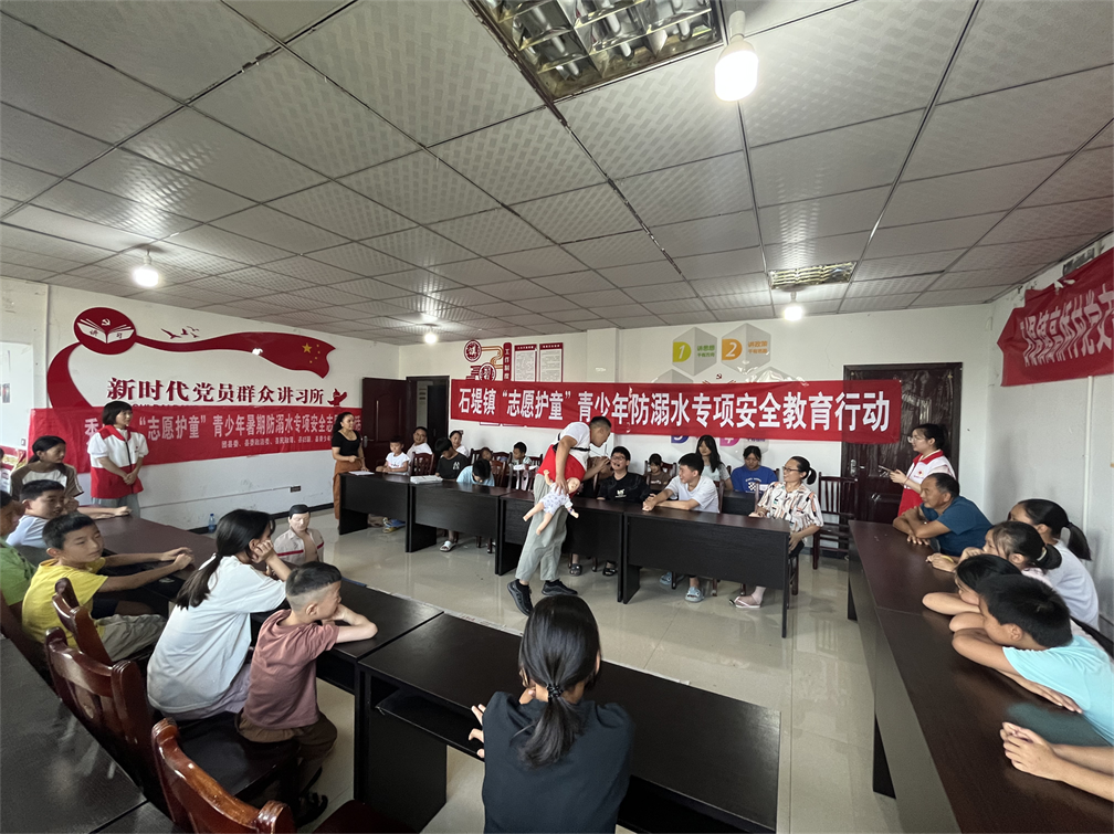 石堤镇开展“志愿护童”青少年暑期防溺水专项安全志愿服务活动。甘昊摄