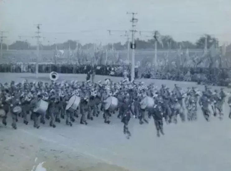 司仪紧接着宣布阅兵式开始,军乐队奏响了雄壮的《中国人民解放军进行曲》。步兵、骑兵、炮兵和坦克兵等方队依次通过天安门广场,年轻的空军也首次驾机掠过天安门广场的上空……虽然军乐队排练时间非常短,但在开国大典上,200人的演奏,没有错一个音符。