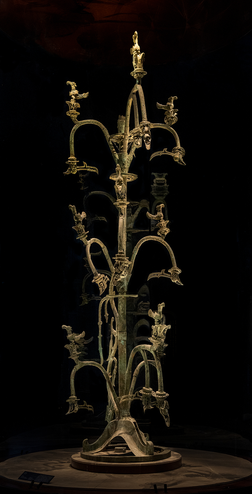 其采用分段铸造法铸造,使用套铸、铆铸、嵌铸等工艺,通高3.96米,在我国迄今为止所见的全部青铜文物中,这株神树也称得上是形体最大的一件。