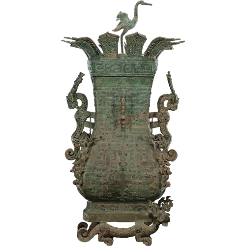 春秋中期青铜制盛酒或盛水器。莲鹤方壶为一对两件(其中一件入藏故宫博物院),主体部分为西周后期以来流行的方壶造型,起到瑰丽的装饰效果,反映了在春秋时期青铜器艺术审美观念的重要变化。