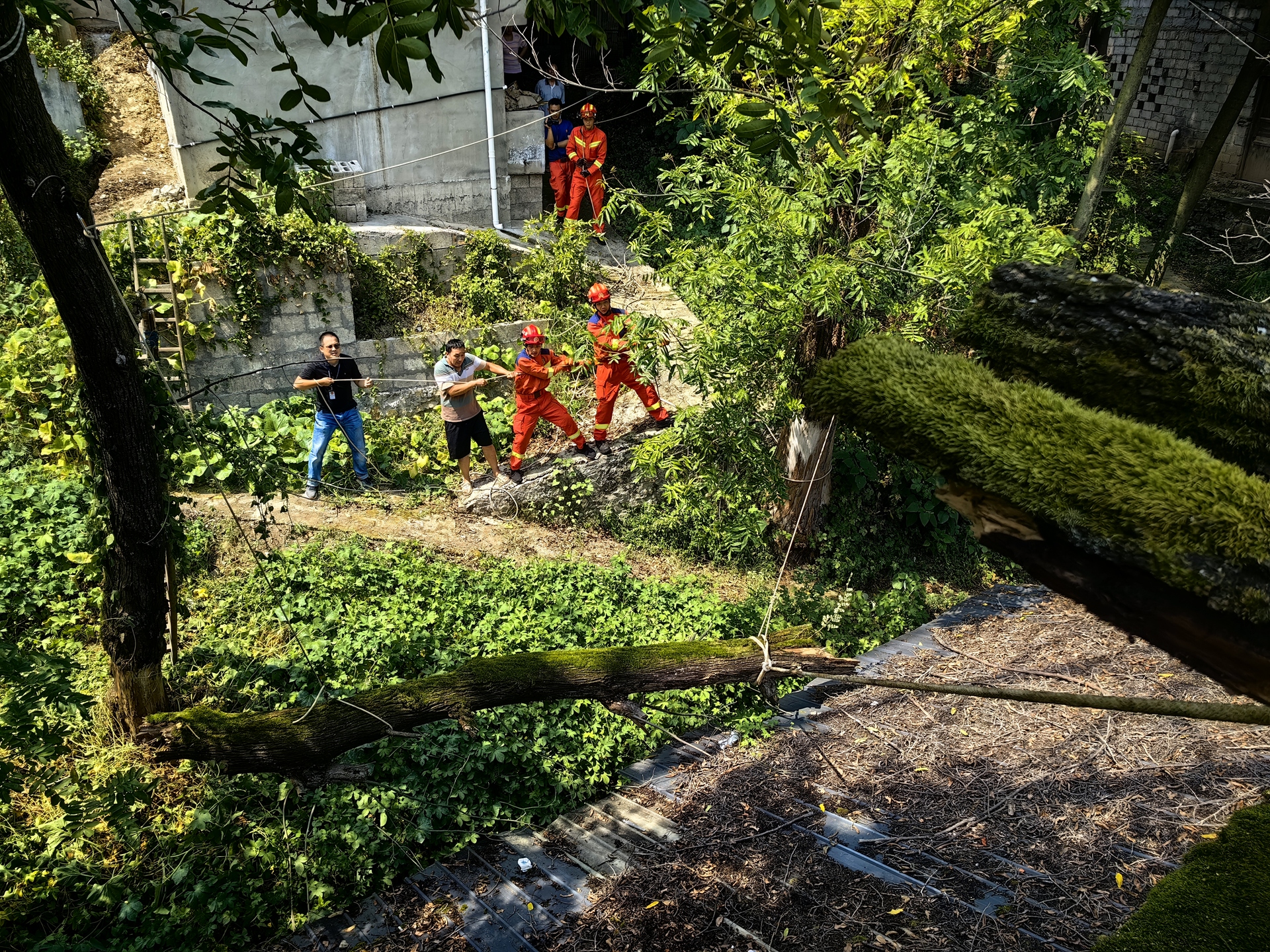 镇指挥中心收到信息后,立即上报至县级,请求消防救援力量支援。消防救援及时选派精干力量到现场,锯断大树,合力为群众排除危险,受到了群众的高声赞扬。