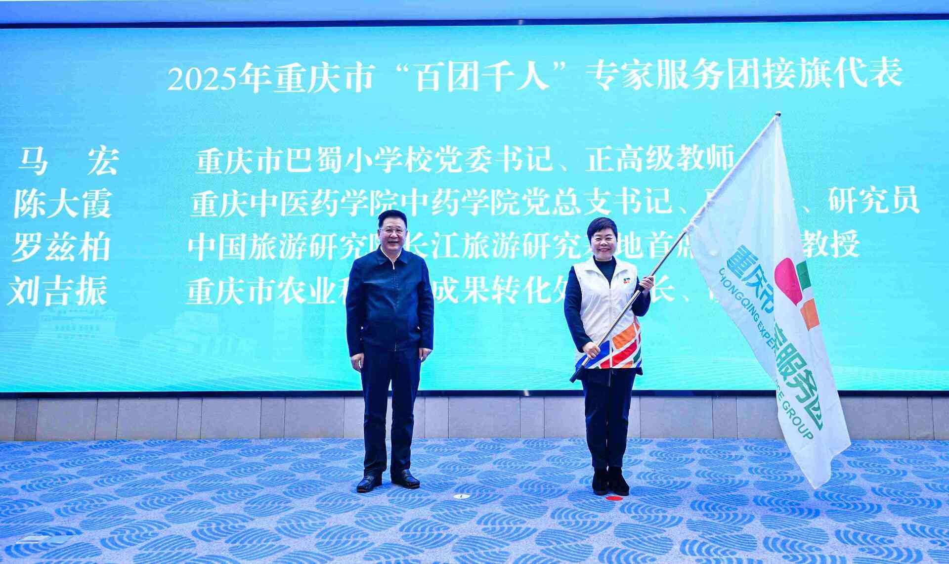 会议现场举行了2025年重庆市“百团千人”专家服务团出征授旗仪式,今年将选派126个专家团队、1041名专家为126个受援单位提供有力技术支持和咨询服务。