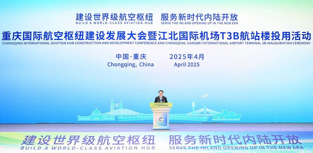 胡衡华在致辞中说,重庆深入贯彻落实习近平总书记视察重庆重要讲话重要指示精神和党中央决策部署,扎实推进交通强国建设试点,大力推动民航高质量发展,国际航空枢纽建设迈出坚实步伐。我们将以江北国际机场T3B航站楼投用为新起点,加力提升枢纽功能,提速规划建设重庆新机场;加力壮大航空产业,构建现代化航空临空产业体系;加力扩大高水平开放,更好支撑内陆开放综合枢纽建设。希望各位专家紧扣大会主题,分享真知灼见,与我们共同开启建设枢纽、筑梦蓝天的新航程,携手搭上跨越山海、联结世界的大航班。