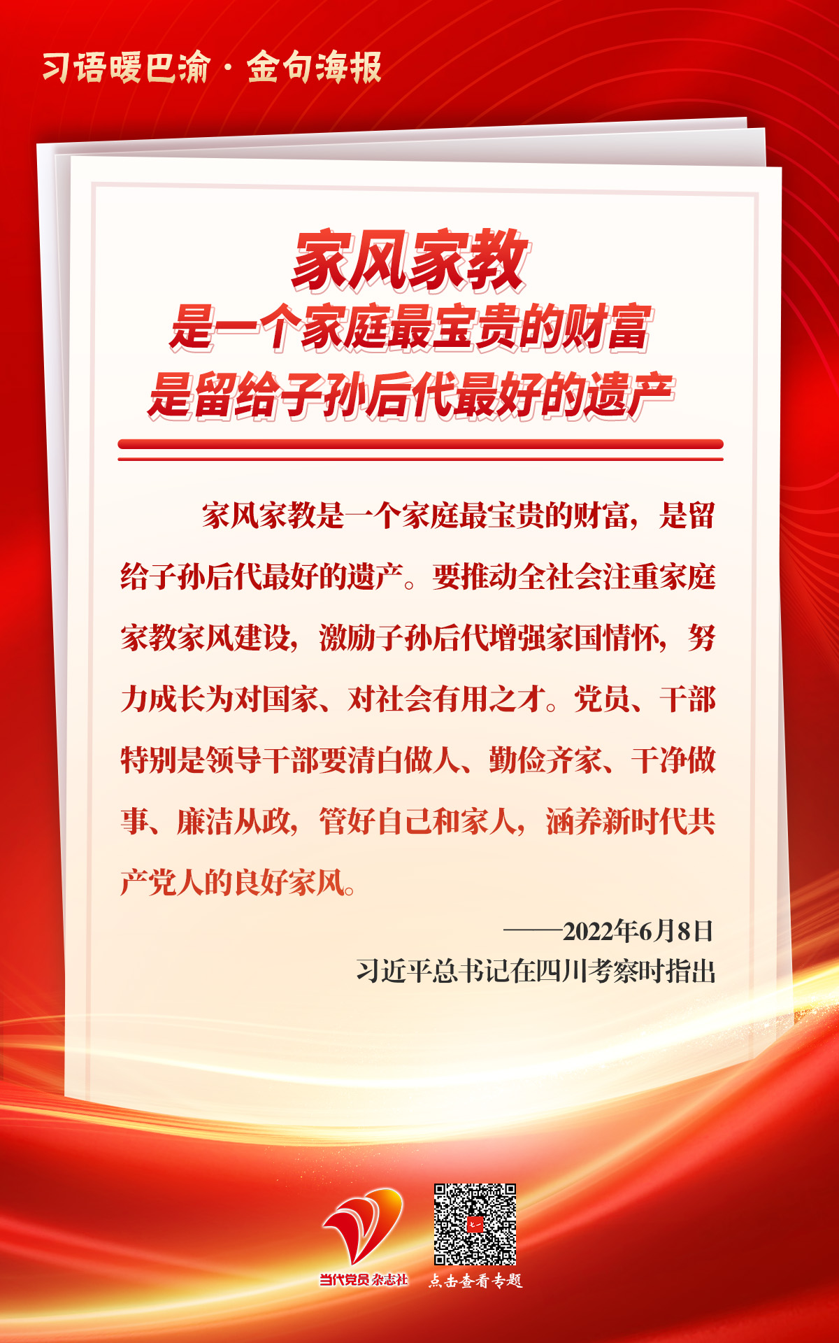 习语暖巴渝|强化理论武装 涵养新时代共产党人的良好家风