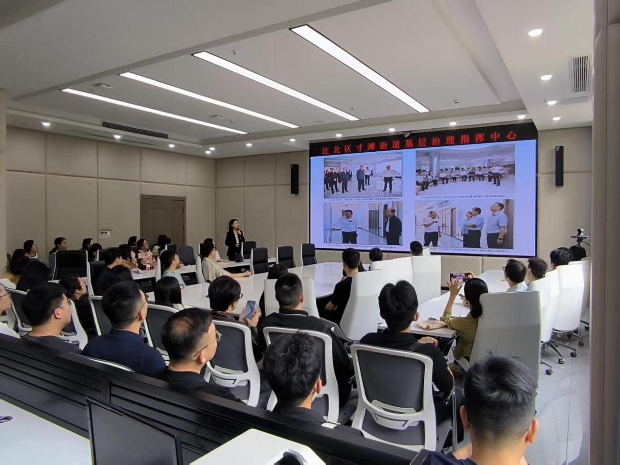 在江北区寸滩街道办事处基层治理指挥中心,数字化治理场景让学员耳目一新:通过“一屏统览、一网通办”的智慧平台,民生诉求实时响应、城市运行精准调度。这一“数字孪生城市”的鲜活案例,正是重庆强化数字赋能、推进城市治理现代化的缩影。参观后,学员们结合重庆“33618”现代制造业集群体系、“416”科技创新布局及数字重庆建设展开交流。