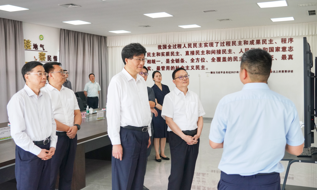金色黄庄乡村振兴人大代表联络站是江津唯一涉及3个镇6个村的联络站,围绕“访民情、聚民智、联企业、促项目”建立了驻站代表联系重点企业(项目)制度,深度嵌入乡村振兴全过程。江津区正培育打造鼎山街道全过程人民民主巴渝实践站,通过加强平台系统重构和功能集成,将原有阵地迭代升级为“一站四厅N单元”。王炯详细了解人大代表进站履职、助推乡村振兴的具体实践和工作成效,听取了巴渝实践站打造有关情况介绍,走进鼎山街道基层治理指挥大厅,深入了解巴渝实践站融入“141”基层智治平台相关情况。王炯强调,在人大代表家站点迭代升级和全过程人民民主巴渝实践站打造中,要始终坚持党对人大工作的全面领导,认真落实好中央八项规定精神,注重立足基层、服务群众,推动与基层既有平台有机融合,坚持统筹谋划、系统推进,因地制宜打造有重点、有特点、有亮点的民主阵地,持续为基层治理体系和治理能力现代化注入新动能,不断深化拓展全过程人民民主市域实践。