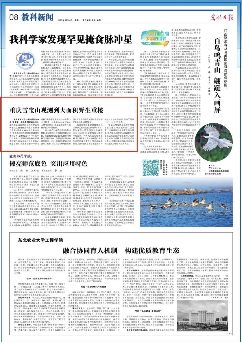 雪宝山地处秦巴生物多样性生态功能区与三峡库区交会地带。“这些植物对生境变化极为敏感,其恢复说明雪宝山的森林生态系统已具备自我修复能力。”西南大学植物学教授王小明实地考察后表示,完整的龄级结构表明该种群已摆脱功能性灭绝的风险。