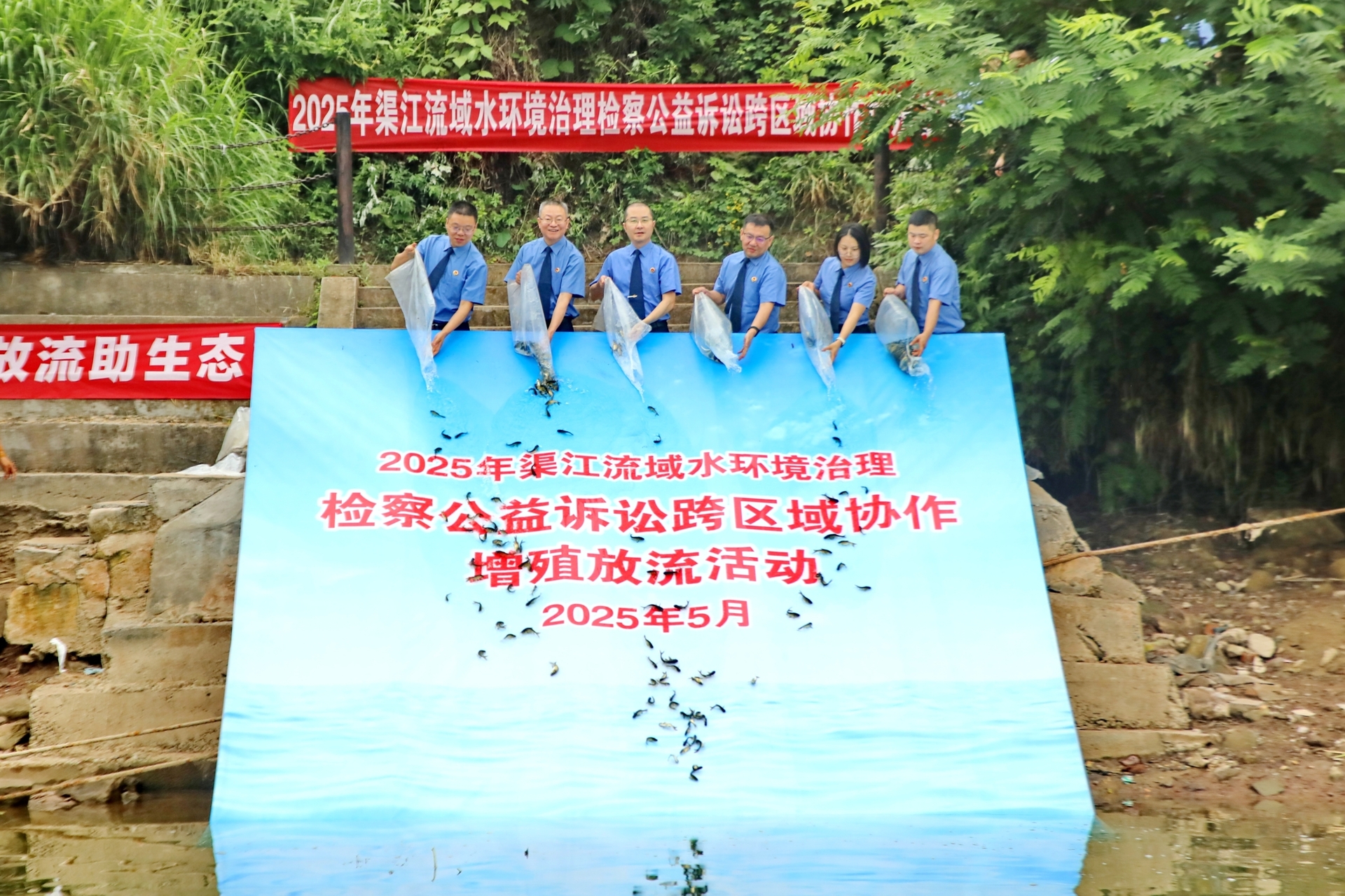 当天,六地检察院还开展了2025年渠江流域水环境治理检察公益诉讼跨区域协作增殖放流活动。此次投放的鱼苗全部由非法捕捞水产品的违法行为人购买,被用于修复渠江水域渔业资源和生态环境。