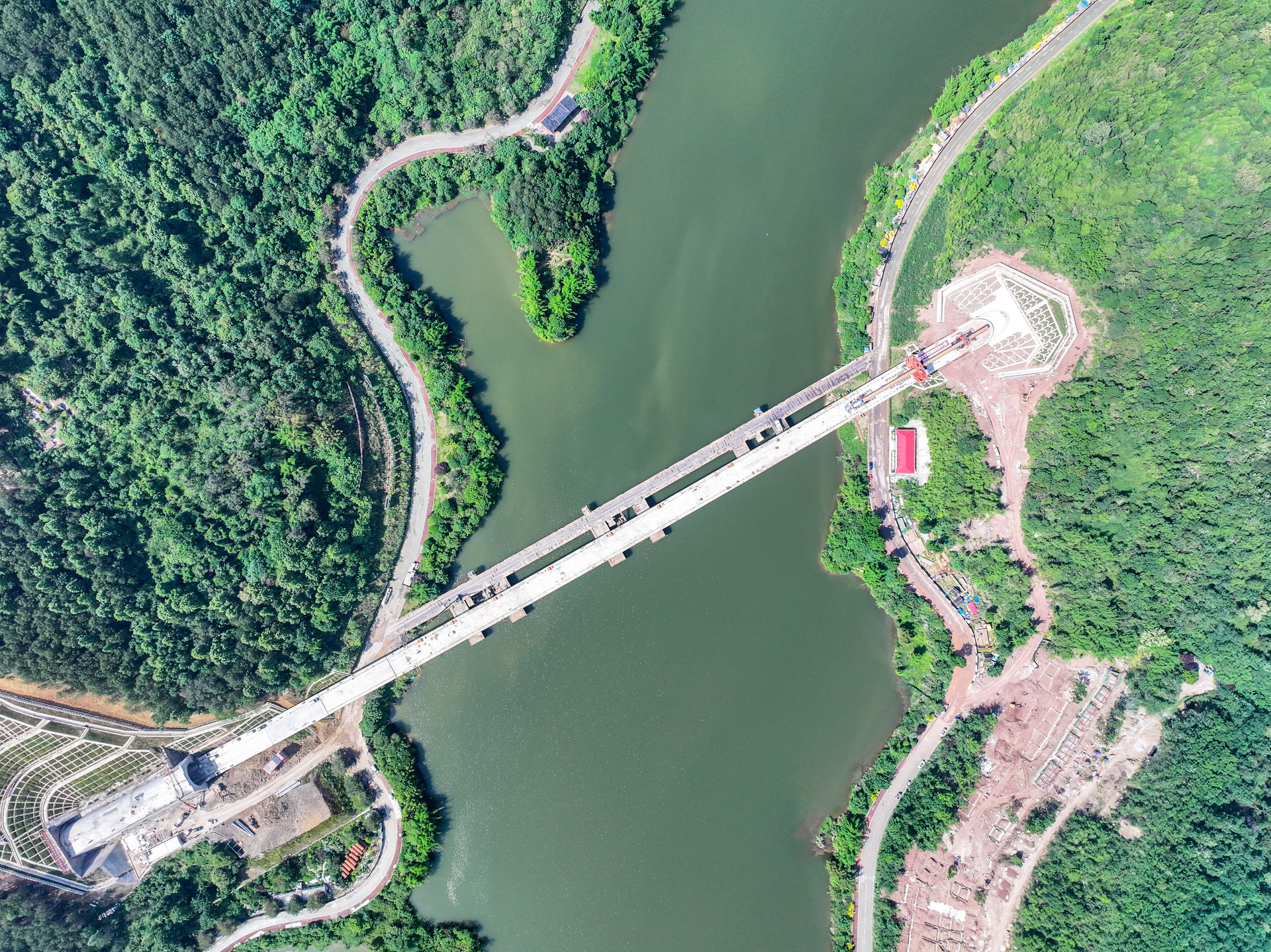 就在几年前,铜梁还“手无寸铁”:既无铁路、又无轨道交通,这给当地的经济社会发展造成了极大阻碍。2025年1月2日,伴随着长长的鸣笛,一辆蓝白相间的列车驶出铜梁西站——市郊铁路璧铜线正式通车,犹如一条钢铁巨龙横跨铜梁城区。从铜梁西站往南,几公里外,就是湖光山色相映成趣的玄天湖。在这里,一座巨型大桥横跨湖面,这正是成渝中线高铁玄天湖双线大桥。这条正在高速推进建设的高铁线路,预计2027年建成通车后,从铜梁站出发,12分钟即可抵达重庆北站,38分钟到达成都,将极大提升人流和物流的便捷性,也为铜梁未来的发展增添无限想象。