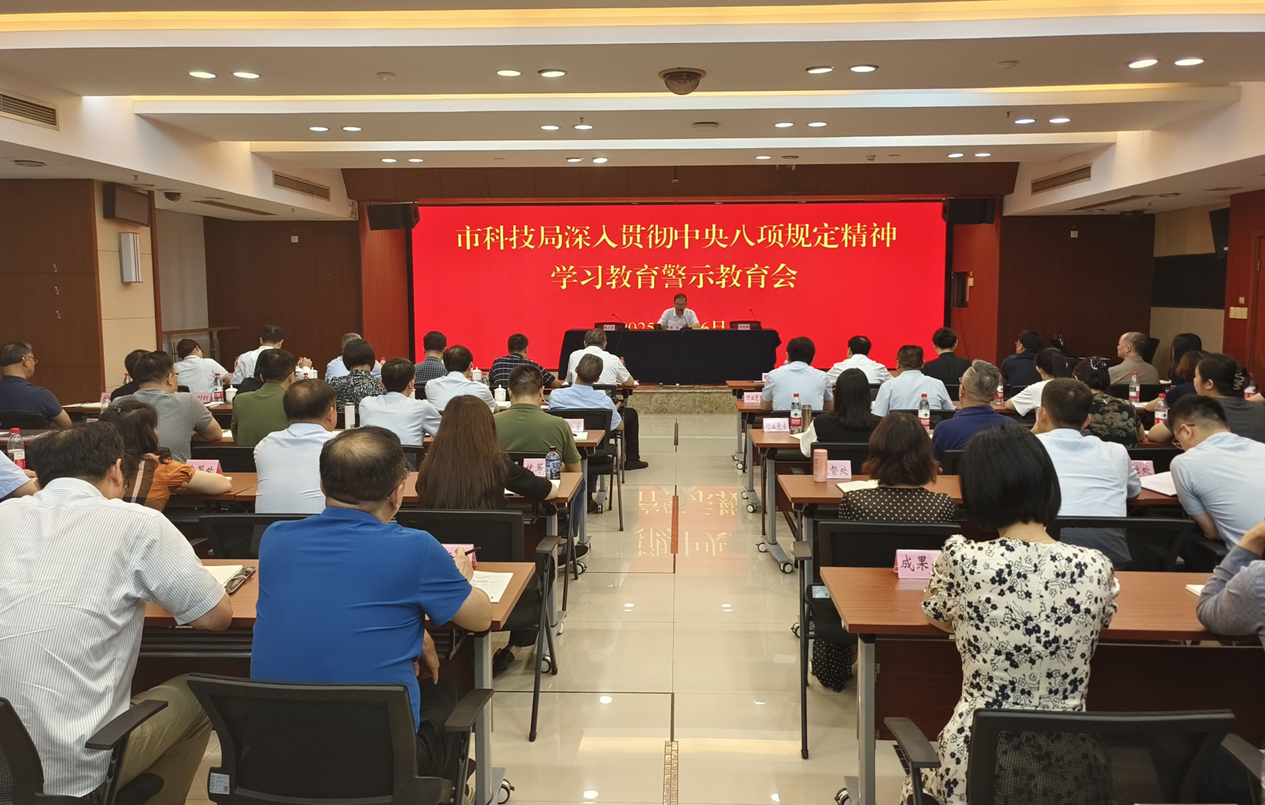 强化警示教育。全体党员、干部观看警示教育片《未通过“检验”的检验专家》,聆听市纪委监委驻局纪检监察组组长张小宁同志纪律专题党课。通报了重庆市违反中央八项规定精神典型问题,并汇编印发科技系统科技领域典型案例警示材料40余个,以案明纪,强化知敬畏、存戒惧、守底线意识。