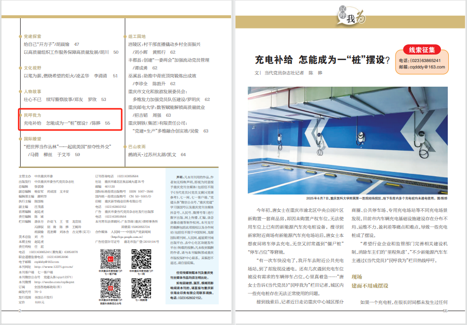 “有一次车快没电了,我开车去附近公共充电场站,到了却发现没通电。还有几次遇到充电车位被没有需求的车辆停车占位,心里真着急……”唐女士告诉《当代党员》“民呼我为”栏目记者,城区内一些充电桩存在无法正常使用的问题。