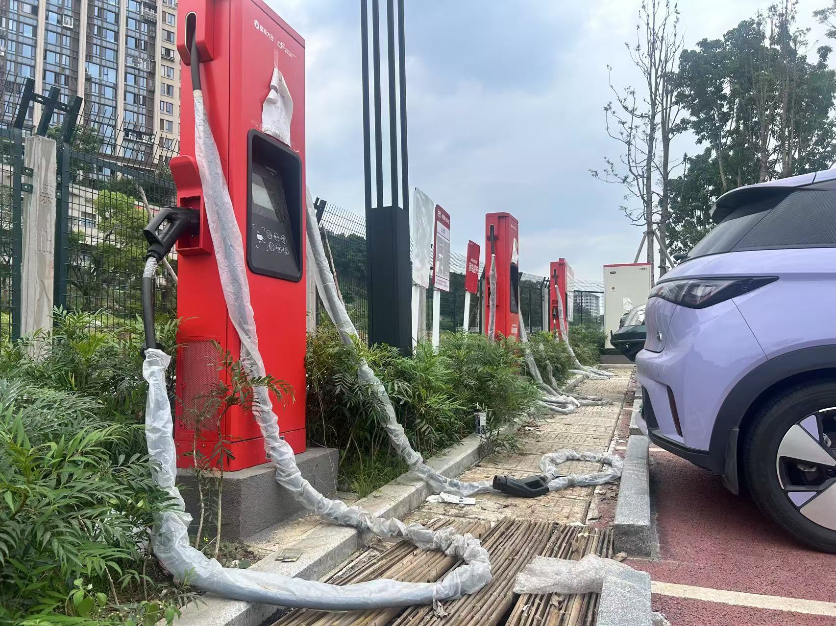 公园天街商场开业多年,但A馆地下车库B1层K012充电车位附近,有10余个慢充桩直到今年6月才投入使用。而在该车库的LG层,有4个快充桩从未接通电源使用。商场客服人员对以上现象解释称:“之前一直未能与充电桩的品牌供应商谈好合作,导致部分充电桩久未投用。近期刚有新的供应商接手,B1层的慢充桩才开通,但那4个快充桩暂时仍不能使用。”