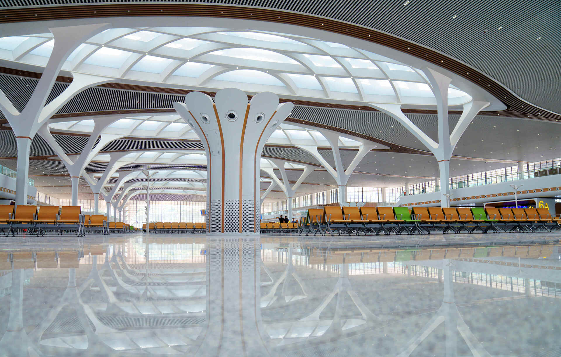 步入重庆东站候车大厅,一股清凉感立即浸润周身。视线所及,5座4米高的“山茶花”形态空调装置亭亭玉立,其花瓣状的风口巧妙设计,能够向周围360度无死角环流或180度测流送风,在20米范围内形成空气湖,为乘客提供均匀舒适的温度。