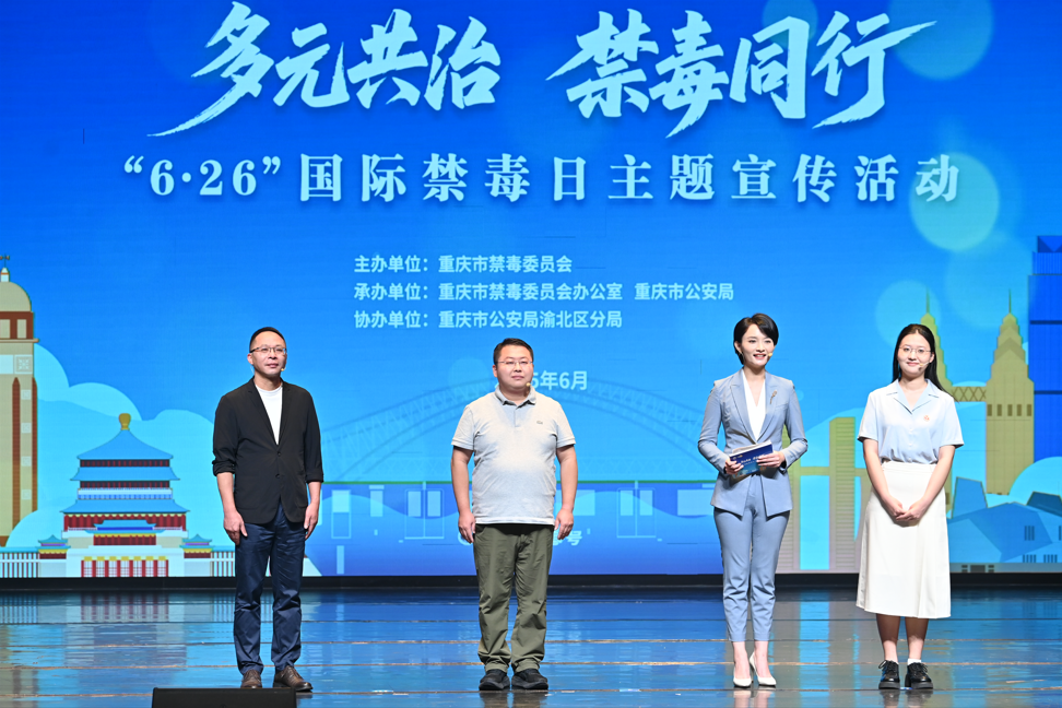活动现场,重庆市南开中学校学生处龚春华、西南政法大学学生邱煦然、重庆市青少年禁毒教育基地讲解员王雨、綦江区篆塘镇平安法制办霍永琴、南岸女子教育矫治所教育矫治大队罗春梅、黔江区公安局禁毒支队甘华林、重庆广电集团(总台)都市广播向莉(芳菲)、重庆市青年美术家协会李勇,以及北碚区平安课堂特训营、滴滴公司、重庆中际新能源科技有限公司、重庆条条是道信息技术有限公司、江北区爱心社会工作服务中心等单位代表逐一亮相,分享他们参与禁毒工作的故事。他们立足本职、坚定信念,在禁毒战场上书写感人篇章,生动诠释“多元共治 禁毒同行”的磅礴力量,展现了全社会禁绝毒品的坚定决心。