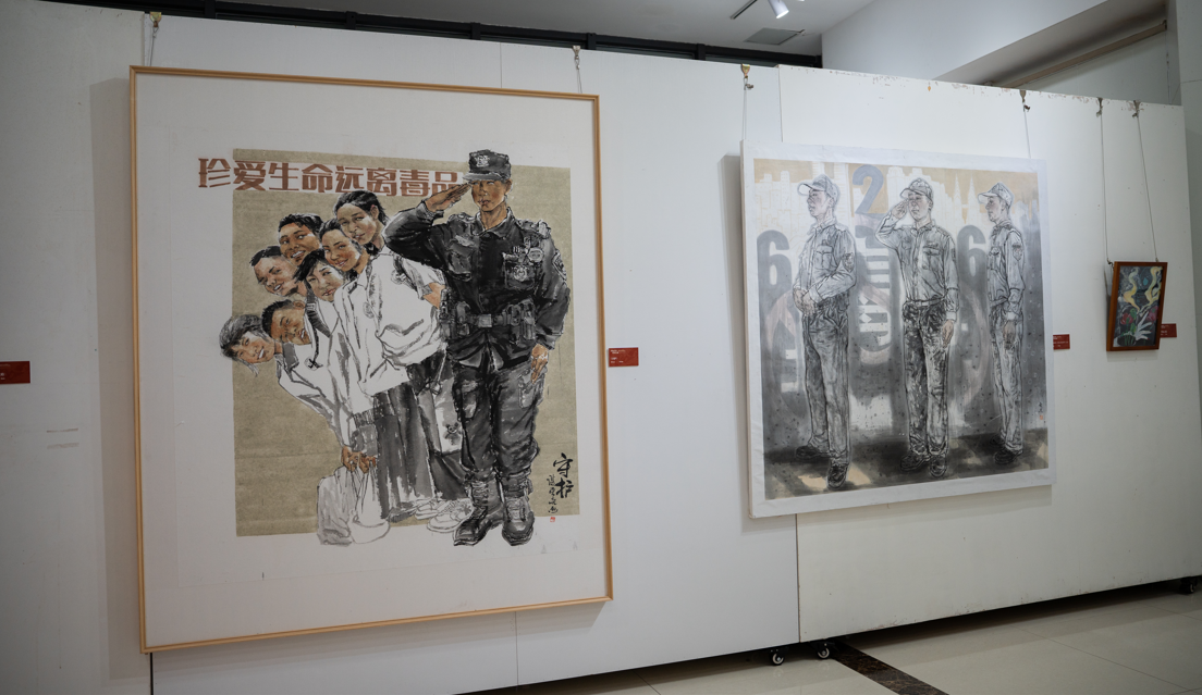 活动现场还设置了“护航青春、禁毒有我”川渝禁毒主题美术作品展,吸引众多市民近距离感受艺术魅力。百幅精选作品涵盖国画、油画、雕塑等多元艺术形式,以极具冲击力的视觉语言传递禁毒理念、知识。西南政法大学学生唐阳观展表示:“用艺术的手法传递禁毒的理念,这种方式进一步深化了我对毒品危害的认知,让我对生命的敬畏之心与拒毒底线意识进一步增强,今后将从自身做起,以实际行动让‘健康人生绿色无毒’理念在每个人心中引起共鸣。”