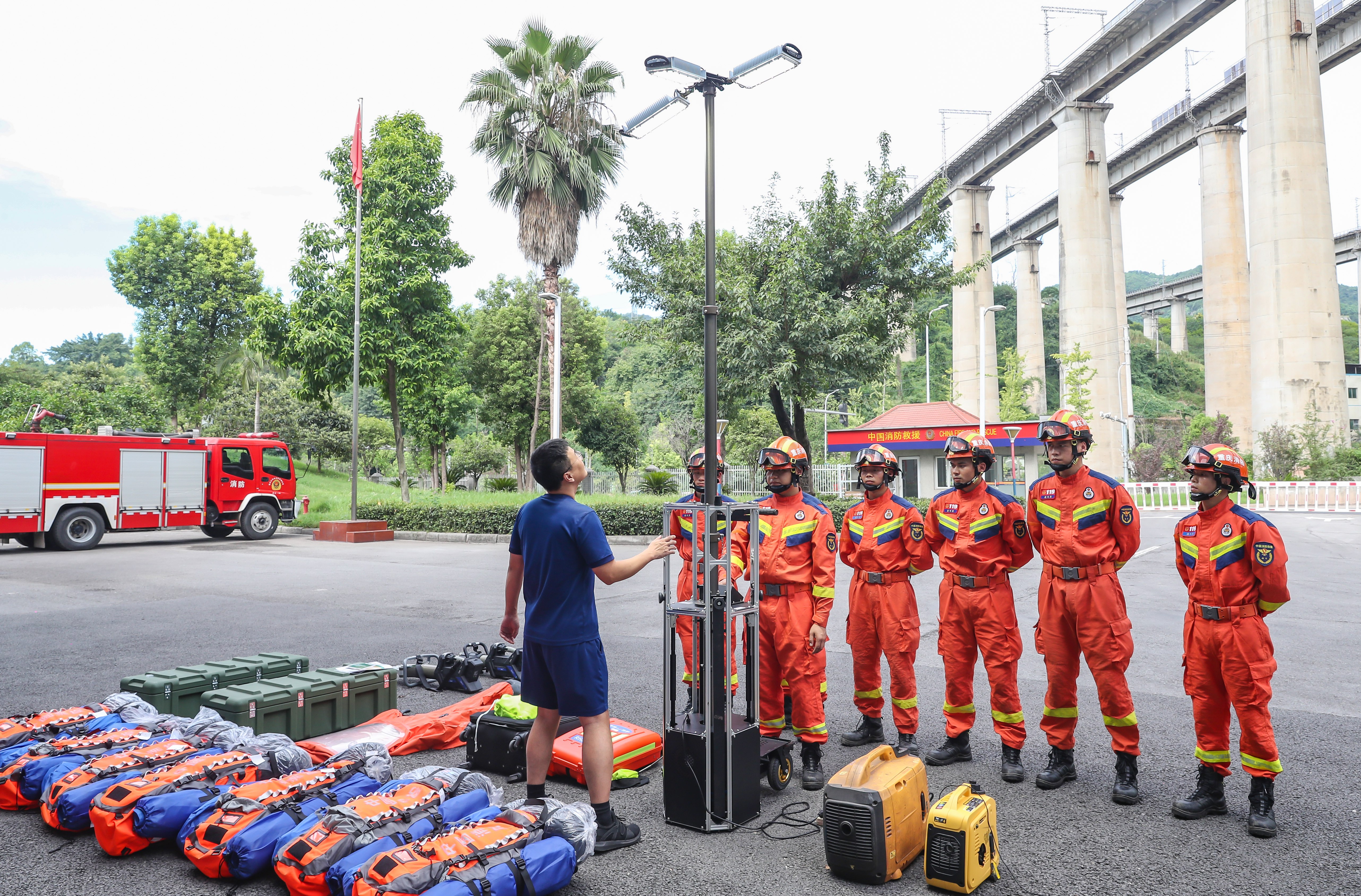 8月19日,重庆市沙坪坝区井口消防救援站内,队员们围绕新配发的国债消防装备进行日常训练。训练过程中,队员们依据系统化培训方案,认真研究新配发装备的操作手册,了解掌握各类装备性能和功能,进一步学习装备日常维护知识、保养操作规范及故障排查方法,学习掌握手台机动泵、浮艇泵、移动照明灯组、正压式氧气呼吸器等装备的基本原理及操作步骤。