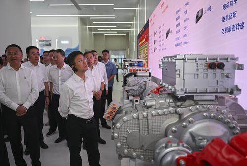 9点30分左右,川渝党政代表团抵达庆铃智能网联新能源商用车研发中心,134千瓦氢动力模块、300千瓦氢动力模块、轻卡电驱桥、重卡电驱桥等多款产品纷纷亮相,代表团边走边参观,不时拿出手机拍照。