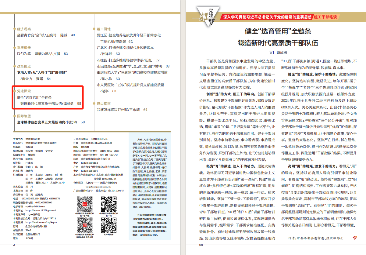 干部队伍是党和国家事业发展的中坚力量,是推动高质量发展的关键所在。要深入学习贯彻习近平总书记关于党的建设的重要思想,锻造一支堪当重任的高素质干部队伍,为加快建设新时代市域党建新高地提供有力支撑。