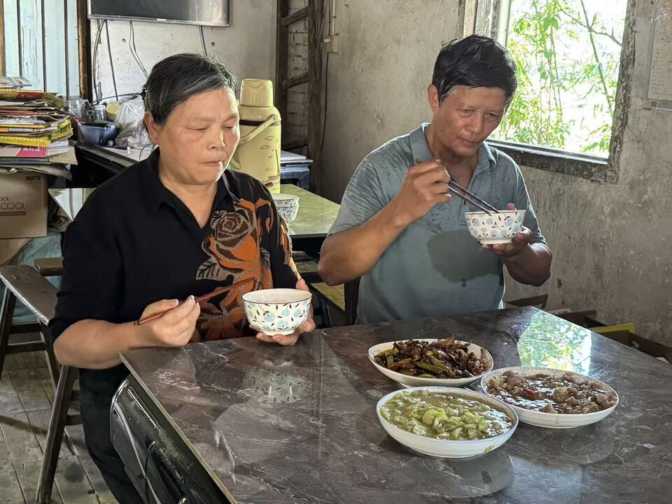 她的坚持也感染了身边的丈夫。蒋大华原本在外打零工,见妻子每日早出晚归、翻山越岭,非常辛苦劳累,便毅然加入屋基村应急队,成了她最得力的“战友”。“她做事认真,我佩服她,也愿意陪着她。”蒋大华话语朴实,却字字坚定。