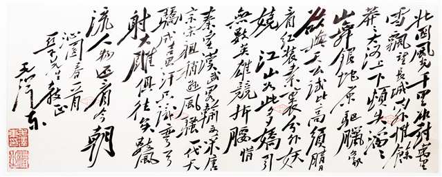 1958年9月,文物出版社出版了刻印大字本《毛主席诗词十九首》。同年12月21日,正在广州的毛泽东在《沁园春·雪》一词上写下了一段批注:“雪:反封建主义,批判二千年封建主义的一个反动侧面。文采、风骚、大雕,只能如是,须知这是写诗呵!难道可以谩骂这一些人们吗?别的解释是错的。末三句,是指无产阶级。”