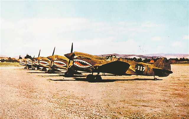 ▲停在机场的飞虎队P-40战斗机。(资料照片) 新华社发