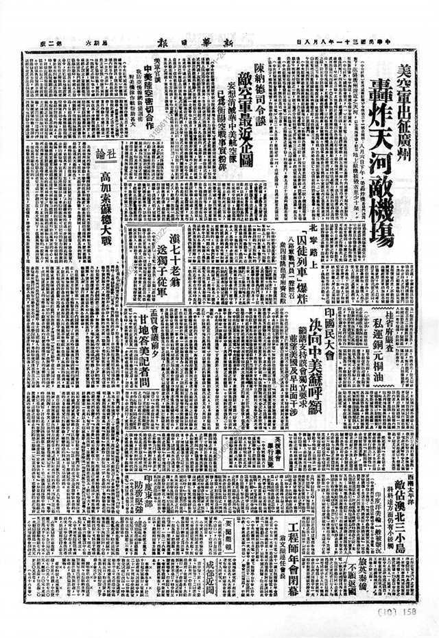 ▲1942年8月8日,《新华日报》对飞虎队的报道。(西南政法大学新闻传播学院供图)