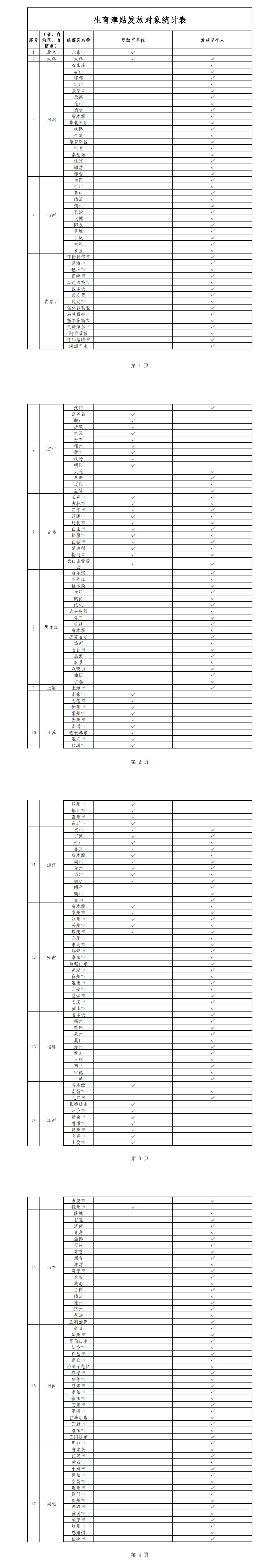 国家医保局积极推进各地医保部门优化生育津贴发放流程,持续调度推进生育津贴直接发放至个人,切实提升群众的获得感与满意度。自6月以来,河北、浙江、吉林、云南、河南等省又相继在全省全面推开生育津贴发放至个人。四川省也已于近日正式发文,9月1日起在全省全面实现生育津贴直达个人。目前,全国有20个省份(含新疆生产建设兵团)全面实现生育津贴直接发放至个人,即河北、山西、内蒙古、吉林、黑龙江、上海、浙江、福建、山东、河南、湖北、海南、重庆、四川、云南、西藏、甘肃、青海、宁夏、新疆生产建设兵团,实现生育津贴直接发放至个人的统筹区占比将近8成。各统筹区生育津贴发放具体情况详见下表。