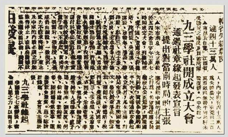 至于组织的名称,大家一致赞同时任国民参政会参政员褚辅成提出的“九三座谈会”,以纪念抗战胜利。