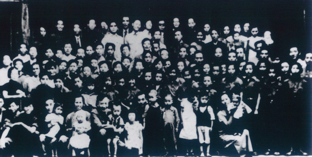 1940年9月,孩子剧团和郭沫若、冯乃超、于立群等在重庆赖家桥全家院子的合影。重庆市沙坪坝区文物管理所供图