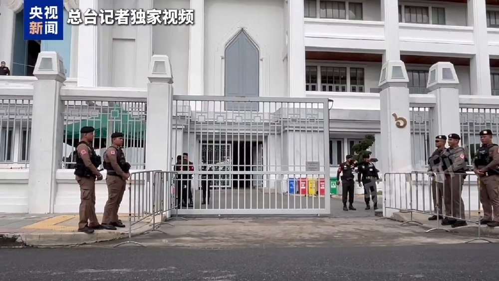 由于前总理他信在政坛的影响力,以及近期泰国政坛发生的一系列变动,让这起案件的裁决在泰国备受关注,在我身边有约100名警卫正在现场维持秩序,法院门口也架起了围栏。