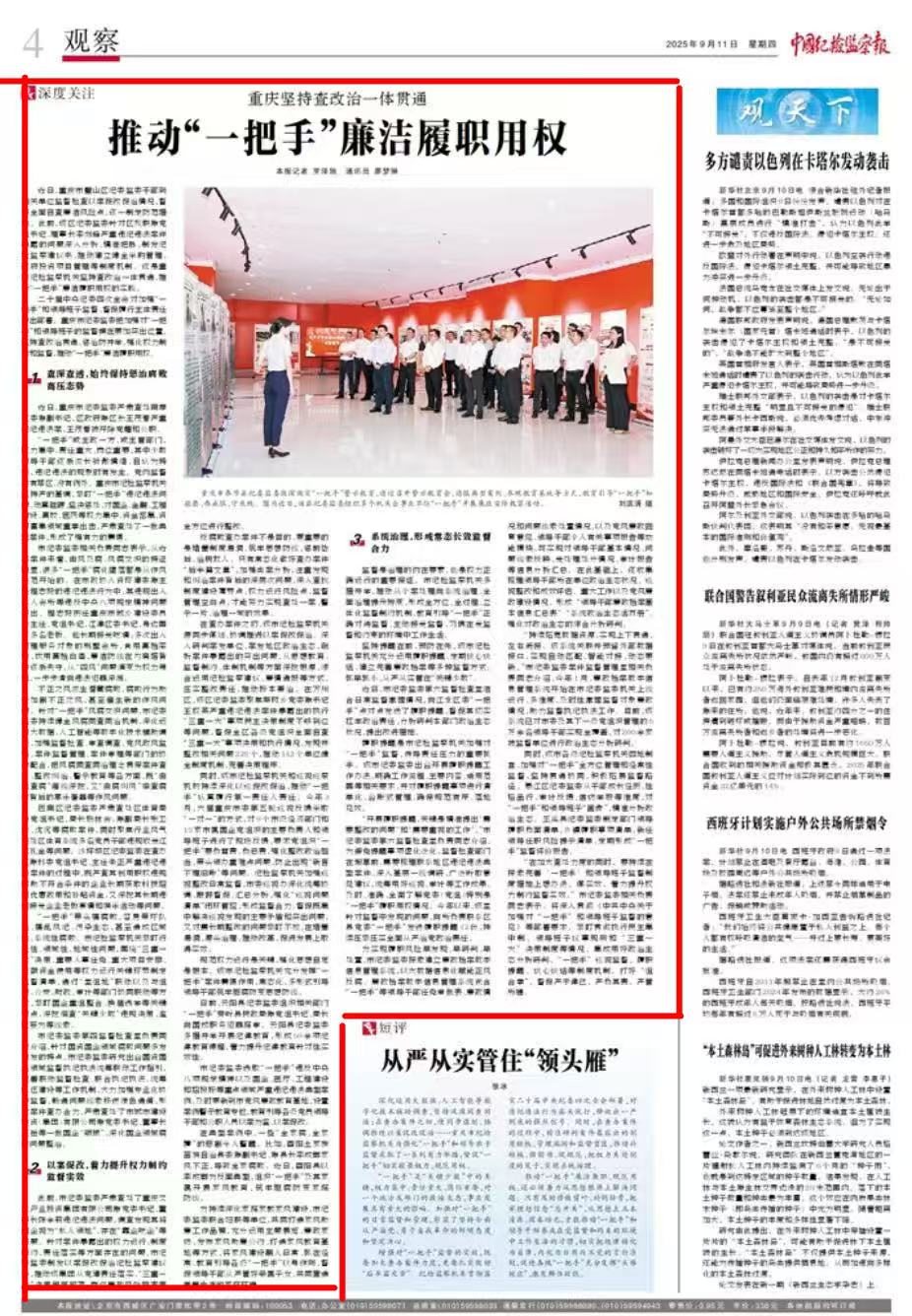 二十届中央纪委四次全会对加强“一把手”和领导班子监督、督促履行主体责任作出部署。重庆市纪委监委把加强对“一把手”和领导班子的监督摆在更加突出位置,坚持查改治贯通、惩治防并举,强化权力制约和监督,推动“一把手”廉洁履职用权。