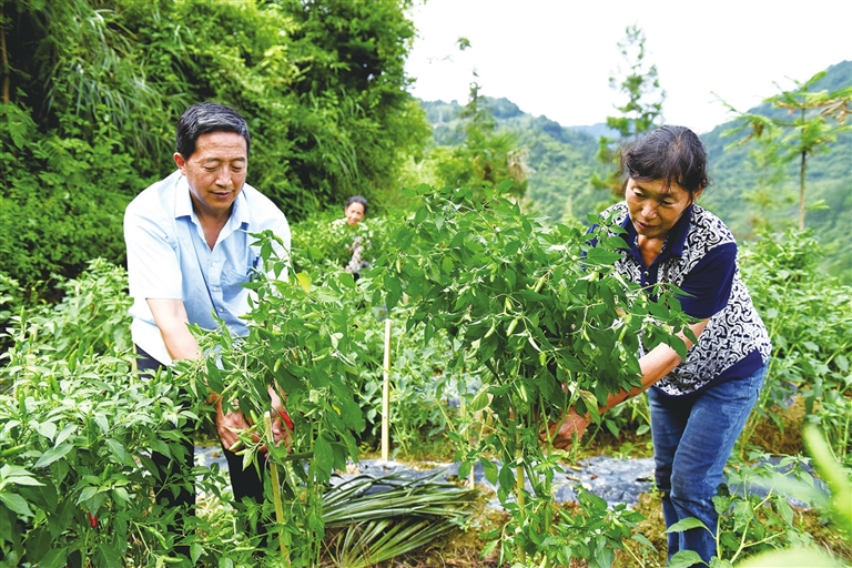 为进一步壮大村集体经济,谭林带领村组干部,结合辣椒种植周期短、市场需求大等优势,通过流转群众撂荒地,今春种植了38亩“朝天红”辣椒。为确保辣椒稳产增效,该村统一种植、统一管理,亩产量预计在1500斤以上,仅此一项集体经济收入有望达到18万元。