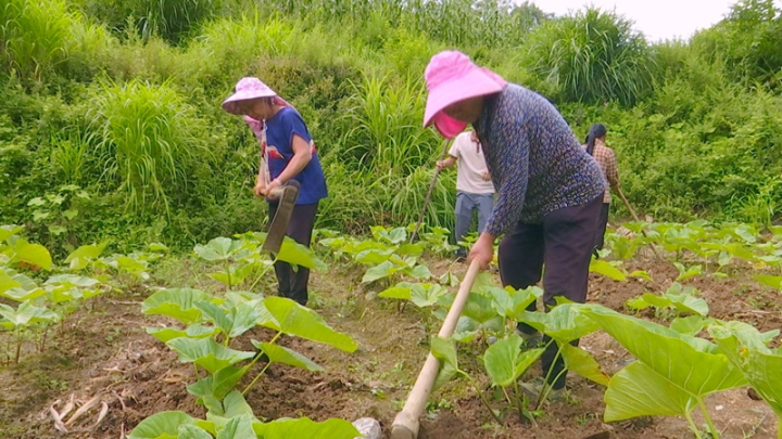 在五马顶社区的白附子种植基地,一片绿意盎然。农户们正在田间管护,为今年的丰收打下基础。
