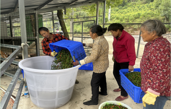 此前,辣椒丰收后,运输难题让村民犯愁,议事会上大家你一言我一语,最终商定由村党总支对接镇里,推动河桐路硬化工程纳入民生实事。如今,平坦的水泥路通到田间地头,货车直接开到基地装货。面对泡菜加工销路窄的问题,议事会又碰撞出“保底收购+利润分红”的新方案,经济联合社降低了前期投入风险,村民也吃下“收益定心丸”。