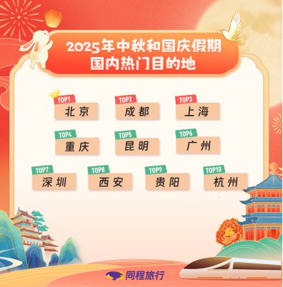 “9月以来,在我们平台上,秋季旅游(含中秋、国庆假期出游)的搜索量同比2024年有较大幅度提升。截至9月11日,国内机票近一周搜索热度同比增长超过30%,机票均价与去年同期基本持平。”同程旅行相关负责人称。
