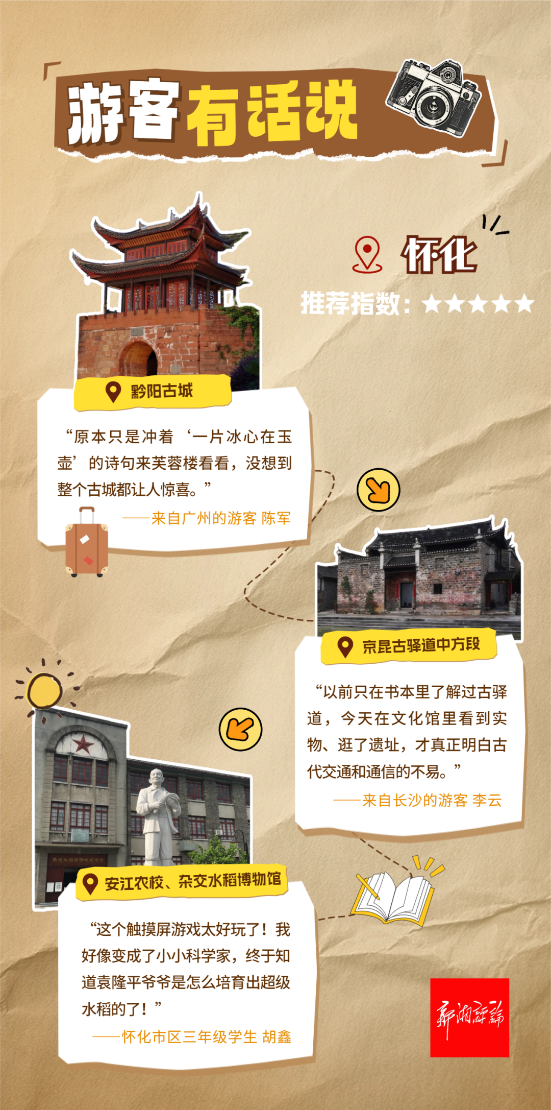 怀化的文化家底不薄。历史上游,7800年前的高庙遗址出土了中国最早的白陶凤纹,2200年历史的黔阳古城保留着“九街十八巷”的完整格局,“湘西明珠”洪江古商城见证百年商业文明;再观近现代,芷江受降纪念坊是中国人民抗日战争胜利的重要见证,袁隆平院士在安江农校以“一粒种子改变世界”书写了杂交水稻科研传奇,还有侗族大歌、花瑶挑花等20余项国家级非遗大放异彩,活态保存的187个中国传统古村落星罗棋布。