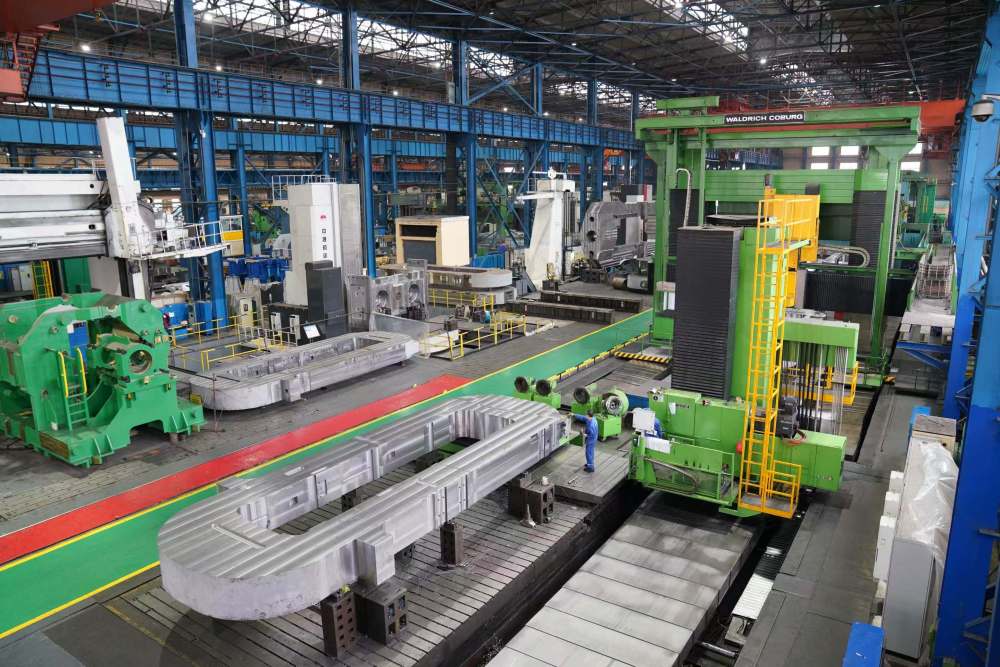 2021年7月,中国一重集团有限公司重型装备制造厂生产车间,工人在进行生产作业。新华社记者 王建威 摄