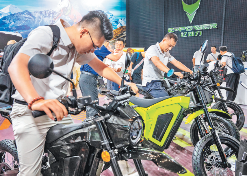 绿色赛道的新征程。在“双碳”目标下,交通工具的电动化、智能化是不可逆转的趋势。随着技术的不断成熟和成本的进一步降低,电动化、智能化摩托车将占据更大市场份额,重塑摩托车出行格局。在本届摩博会上,新能源摩托车、电动化解决方案已成主流。